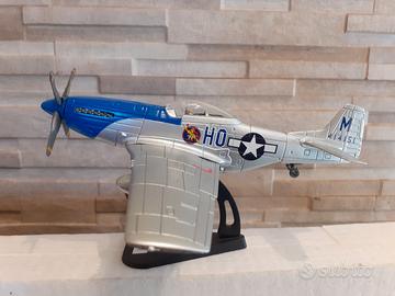 Aereo P 51 scala 1/50 in resina, nuovo da collezione, apertura alare 24 cm, lunghezza fusoliera 21 cm, completo di piedistallo. Acquisti multipli unica spedizione.