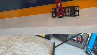 Modello motorizzato elettrico 5s (sunnysky X2535 720 kv) e servi (tutti con ingranaggi in metallo) hitec HS 225MG sulle ali e HS-5245MG su elevatore e direzionale (con squadrette in alluminio), apertura alare 155 cm. Winglets rimovibili. L'aereo si trova in Campania e non è possibile spedire a causa dei piani di coda che ovviamente sono incollati. Il modello ha fatto pochissimi voli. Chiedo 480 € e nella vendita includo anche la sacca ali e regalo due pacchi lipo leggermente gonfi ma ancora funzionanti.