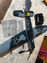 Aereo radiocomandato Messerschmitt BF109 nuovo, 4 canali RTF ancora da montare completo di radiocomando, carica batteria e batteria, la batteria è nuova, funzionante, ma ha i suoi anni. apertura alare 890mm lunghezza 720mm