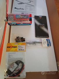 Pylon Racer Rifle 1M ormai introvabile, nuovo, tutto in fibra e ala rigidissima per velocità estreme, completo di 2 servocomandi HS MG con ingranaggi in metallo, ESC Extron da 50A, batteria lipo Nvision nuova da 3S 1900 mah 39C, ricevente Spektrum 4CH nuova, elica Robbe, manuale di montaggio. Il tutto è nuovo e chi se ne intende, sa che questo modello può raggiungere tranquillamente i 250 km/h. Motore non incluso. Non scambio e non accetto offerte assurde.