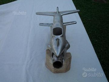 Aereo gioco per tiro al bersaglio, completo, anni 50-60, in alluminio, tubo di lancio in ferro nichelato, piedistallo non presente, funzionamento a molla, dimensioni cm. 36x22x8, da collezione, come da foto, vendita fra privati, spese di spedizione escluse.