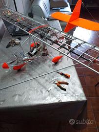 il modello è interamente costruito con alluminio ultraleggero, per un peso complessivo che non supera i 2 kg, pronto al volo .