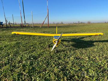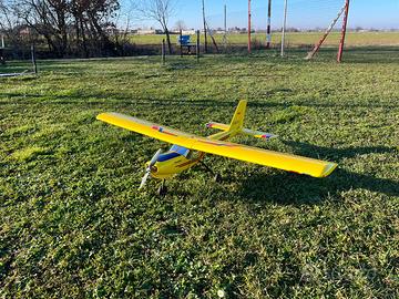 Aeromodello ad ala alta READY, motorizzato elettrico (A3610XL, max. 40A, 910 KV), regolatore 45A optoisolato (2-7 Lixx), elica APC 12x6E, 3 servocomandi nuovi (Hitec HS-430BH HV), ricevente (FrSky TD R6), alimentazione separata per motore (LiPo 3S 4500mAh) e ricevente (LiPo 2S 1000mAh), batterie non incluse. Regalo supporto motore originale per convertirlo a scoppio. Per chi fosse interessato posso mandare video recente del modello in volo. Vieste le dimensioni dell'oggetto non spedisco, solo ritiro a mano.