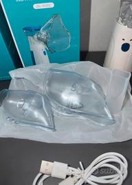 Perfetto per aerosolterapia a casa o in viaggio, aiuta in caso di asma, tosse, raffreddore, sinusite, bronchite e altre affezioni respiratorie. Dispone di doppia alimentazione (cavo Type-C o 2 batterie AA), serbatoio fino a 8 ml, vaporizzazione a micro maglia con particelle fini e funzionamento silenzioso sotto i 50 dB. Facile da usare e da pulire, include maschera per adulti, maschera per bambini, boccaglio, cavo USB Type-C e manuale d'uso. Condizioni perfette, nuovo con confezione originale.