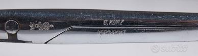Tipo: forbice chirurgica curva — modello storico, non più in produzione come strumento da sala operatoria, ma di grande interesse per collezionisti e appassionati di strumenti medici d’epoca.