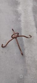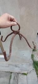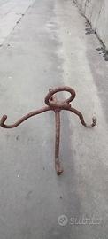 Affascinante e autentico rampino da sollevamento del primo Novecento in pesante ferro battuto forgiato a mano, un cimelio industriale dal carattere rustico e vissuto proveniente da un antico cantiere edile, perfetto come pezzo d'arredo esclusivo per collezionisti di antiquariato rurale, amanti dello stile steampunk o interior designer alla ricerca di un dettaglio decorativo unico e ricco di storia.