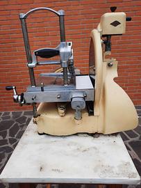 Affettatrice a volano antica da restaturare. Comunque la meccanica non è bloccata e scorre liberamente. Tavolino in legno di appoggio escluso dalla vendita. Ritiro in loco esclusa spedizione.