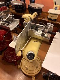 bellissima affettatrice antica -Berkel modello: 114 -Prodotta negli anni: 1946 - 1957 (circa) -Misure lama: 275 mm -Completamente restaurata, restauro di altissima qualità, la affettatrice viene tutta smontata, i pezzi in ghisa vengono sabbiati poi portati in carrozzeria dove vengono stuccati, verniciati, decorati e applicata una vernice trasparente per proteggere le decorazioni e la vernice, i pezzi in ferro e alluminio vengono lucidati e cromati, se irriparabili addirittura cambiati, come i cuscinetti e la lama, in fine la affettatrice viene tutta rimontata da un esperto professionista. -Regolazione fetta posto al lato della affettatrice per regolare lo spessore della fetta. -misure affettatrice: peso: 48 kg larghezza: 50 cm profondità: 50 cm altezza 37 cm (senza piedistallo) -ideale per investimento, esposizione e utilizzo (disponibile con o senza piedistallo) -Possibilità di spedizione con corriere anche all’estero, con imballo sicuro e resistente -Possibilità di visitare la show-room su appuntamento dal lunedì al sabato Per ulteriori informazioni telefonare o scrivere su whatsapp al numero +39 339 801 3721 Matteo