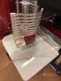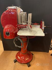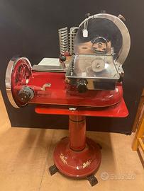 Affettatrice berkel modello 115 stacca fetta con piedistallo completamente restaurata , questa affettatrice e nata per appoggiare la fetta direttamente sul piatto senza essere toccata , disponibile di diversi colori e disponibile da restaurare