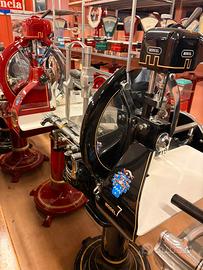 -Completamente restaurata, restauro di altissima qualità, la affettatrice viene tutta smontata, i pezzi in ghisa vengono sabbiati poi portati in carrozzeria dove vengono stuccati, verniciati, decorati e applicata una vernice trasparente per proteggere le decorazioni e la vernice, i pezzi in ferro e alluminio vengono lucidati e cromati, se irriparabili addirittura cambiati, come i cuscinetti e la lama, in fine la affettatrice viene tutta rimontata da un esperto professionista.