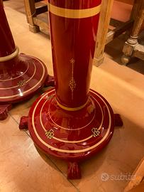 la affettatrice viene tutta smontata, i pezzi in ghisa vengono sabbiati poi portati in carrozzeria dove vengono stuccati, verniciati, decorati e applicata una vernice trasparente per proteggere le decorazioni e la vernice, in fine la affettatrice viene tutta rimontata da un esperto professionista.