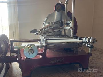 Affettatrice Berkel originale a mano, anni '50 '60. Perfettamente funzionante . Parti in acciaio e cromate in ottime condizioni , telaio conservato in perfette condizioni con vernice, scritte e marchi originali. Mai stata in cantina. Bensì usata in casa . Da pulire e fare registrare perché al taglio scarrella.Lama originale, affilatoio usato poco e niente.Ritiro a mano