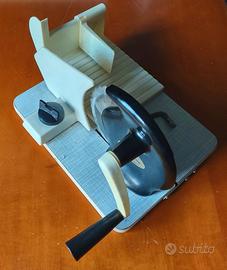 Vendo Affettatrice Manuale Vintage anni 60 - VUERRE Made in Italy. In acciaio, base legno rivestito, in ottime condizioni come da foto, pieghevole ancora funzionante ed efficiente. Pezzo d'arredo molto raffinato. Spessore del taglio regolabile, morsetto per fissarla al tavolo. Molto carina anche solo come oggetto d'arredo o da collezione. DIMENSIONI E PESO Larghezza: 260 mm Profondità: 210 mm Altezza: 340 mm Peso: 2,71 kg