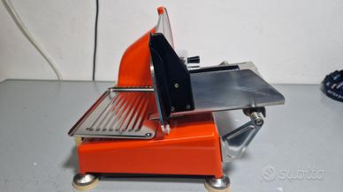 Affettatrice vintage anni 60', marchio italiano. Perfettamente funzionante, ottimo come oggetto da esporre, ma se sei un nostalgico la puoi anche usare! Il colore è un bellissimo arancione originale anni 60.