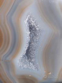 Grande agata naturale di generose dimensioni e dai rari e fantastici colori e disegni. La linea che si vede non è una rottura ma una vena naturale della pietra. Dimensioni cm 25x20x5, peso kg 3,6.