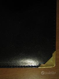 Finemente Rilegata con copertina rigida imbottita, con lettere dorate e triangoli di metallo dorato agli angoli.