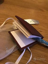 Elegante agendina da borsetta abbinata a una penna decorata con perline e dettagli luminosi.