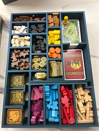 Organizer interno per il gioco da tavolo agricola. Questo modello è appositamente pensato per essere inserito all'interno della confezione del gioco Agricola e contenere tutto il materiale del gioco base COMPRESE LE PLANCE DI GIOCO al di sotto di esso (vedi foto varie).