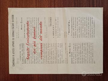 Volantino originale d’epoca del 1958 della ditta AGV di Valenza (AL) , produttrice di caschi e selle per moto. Il depliant pubblicizza il modello di casco Jet X60 . Il volantino mono pagina misura cm 17x 25 stampato su due facciate. Spedisco con Poste Italiane in confezione cartonata.