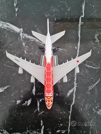 Questo modellino riproduce fedelmente l’Airbus A380 di ANA All Nippon Airways, nella spettacolare livrea “Orange Turtle”, dedicata al sole hawaiano e ai voli verso Honolulu. Realizzato in scala 1:500, curato nei minimi dettagli.