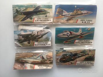 Vendo in blocco i seguenti 21 kit di montaggio vintage di aerei Airfix serie 1 in busta: