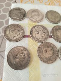 vendo 11 monete da 2 lire argento regno vitt Emanuele Umberto 1