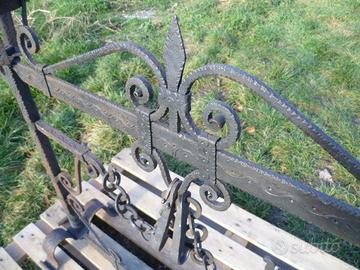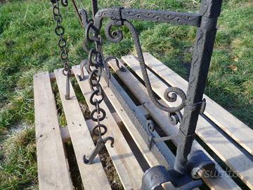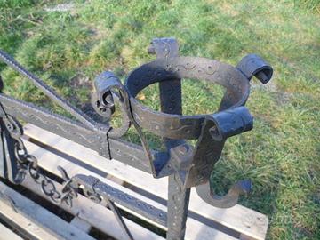 Realizzato da fabbro "Artista Friulano." Battuto e cesellato, tutto a Mano, privo di saldature, completo di catene da supporto paioli (Come da foto).