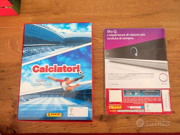 Vendo album calciatori Panini 2018-2019, comprensivo di cartellina rigida, completo di tutte le figurine (anche degli aggiornamenti e delle sezioni aggiuntive) e del timbro ufficiale Panini. Condizioni ottime come da foto, segnalo unicamente la pagina centrale staccata dalle spille.