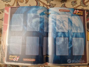 Raccoglitore Lamincards Dragon Ball GT Serie Remake 2014 semi completo con 157 carte su 160 + campo di battaglia, checklist, regolamento e bustina vuota in omaggio.
