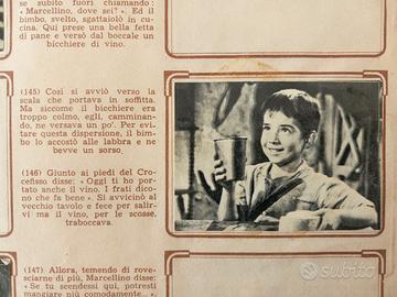 Album figurine "Marcellino pane e vino", edizioni Lampo del 1956, con figurine tratte dall'omonimo film dell'epoca in bianco e nero. Volume discreto, con alcune pieghe in copertina, ingiallimento fisiologico vista l'età, l'album non è completo, ci sono 80 figurine su 200 + 3 doppie sfuse . Si vende ad Euro 30. Spedizione in tutta Italia con raccomandata tracciabile piego di libri ad Euro 5.