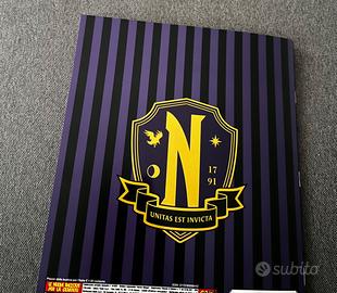 Album figurine Mercoledì 2 Addams Wednesday con all’interno un poster e 6 figurine, inoltre un pacchetto figurine Panini Nuovo mai utilizzato
