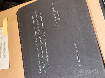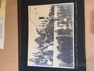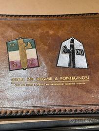 Album fotografico oblungo, cm. 26x36, piena pelle con decori a secco e sbalzo, leg. con cordoncino. L'album è composto da 16 cc contenenti 15 fotografie (cm. 18x23). Sulla prima p. dedicatoria manoscritta (inchiostro bianco): "Fascisti e popolo di Ponteginori Offrono al R. Provveditore agli studi insieme all'espressione della loro riconoscenza e devozione. 9 Ottobre