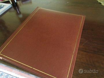 Perfetto e nuovo album per foto o documenti. Copertina in pelle color cognac con profilature dorate. 20 pagine. Interno perfetto. Marcato LEBEZ
