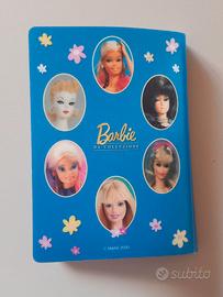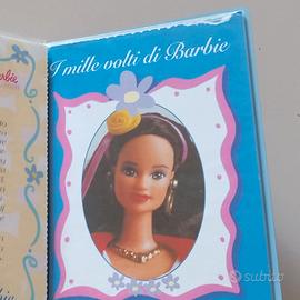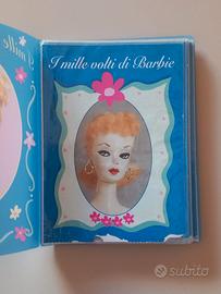 Raro album "I mille volti di Barbie". Le 24 schede contengono le foto e la descrizione di alcune delle barbie più iconiche prodotte tra il 1959 e il 2000 (Pony Tail, Ebony/Black, Superstar, Rocker, Golden Mackie, Fashion Luncheon, Neptune Fantasy, Magia delle Feste/Happy Holidays...); l'attenzione e rivolta soprattutto ai vari tipi di viso / face mold.