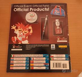 Album ufficiale Panini Euro 2008 completo di tutte le figurine. L’album è in buone condizioni generali: tutte le figurine sono presenti e ben attaccate. Presenta qualche piega visibile da foto (soprattutto sulla copertina), ma nel complesso è ben conservato.