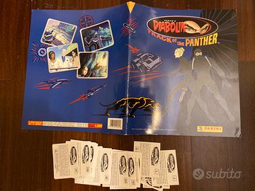 Album Panini vuoto “DIABOLIK Track of the Panther” anno 2000 con poster ancora attaccato e n. 62 figurine con velina nuove, tutte diverse. L’album presenta in basso a destra un segno come da foto allegata, per il resto in buonissimo stato con pagine saldamente attaccate.
