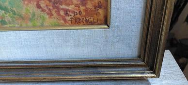 Luminoso quadro, olio su tela, del maestro fiorentino ALDO PAZZAGLI (1902-1962) paesaggio giallo con covone l'opera è firmata in basso a destra e dedicata, firmata e datata sul retro. Perfette condizioni della tela, buone condizioni della cornice. Quadro 63 X 48 cm. Consegna gratuita in Mugello e da concordare. Spedizione ed imballo molto accurato euro 20.