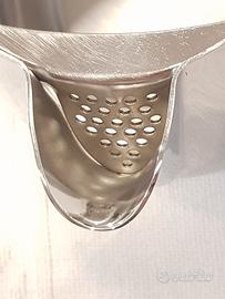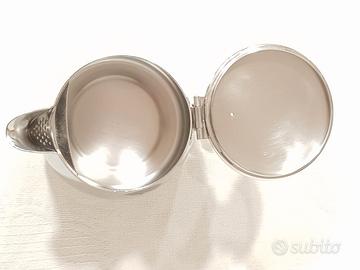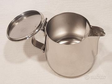 ALESSI TEIERA 90 cl. Codice articolo: 102/90 Designer: Ufficio Tecnico Alessi BELLISSIMA TEIERA LATTIERA marca ALESSI in acciaio inox. Condizioni con tracce d'uso come in foto. Nessun graffio o colpo. Designer: Ufficio Tecnico Alessi Teiera con coperchio Becco con accorgimento salva goccia Contenuto: 90.00 cl Misure: H 13 cm L 12 cm P 17 cm Peso: 575 gr Come da foto, tenuta molto bene con minimi segni d'uso. Lucidatura buona quasi a specchio e senza segni. PREZZO NON TRATTABILE a meno che non si acquistino più oggetti. Visibile a Bergamo, consegno a mano in zona, per spedizione tracciata Italia + 12 euro.