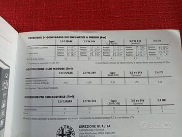 Alfa Romeo 166 Manuale uso manutenzione anno 2000