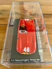 Raro modello da collezione in rosso corsa brillante, perfettamente conservato nella teca originale. Riproduce la leggendaria Alfa Romeo 6C 3000 CM Spider #46 del Gran Premio Supercortemaggiore (Merano) 1953, icona delle corse sportive italiane del dopoguerra.