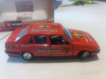 ALFA ROMEO 75 GR. A della BURAGO Jagermeister (art. 0119) con scatola originale. Il modello è in perfette condizioni. Apertura porte perfette. Modello con la scatola originale che presenta segni di usura (solo la scatola ha segni di usura) Automodello tenuto sempre in vetrina.