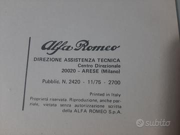 ALFA ROMEO ALFETTA vetture tipo 116 classe 1800 caratteristiche e prescrizioni PROVENIENTE DA OFFICINA AUTORIZZATA anno novembre 1975 condizioni ORIGINALI tutte le pagine presenti completo vendesi nello stato in cui si trova euro 50 piu eventuali spese di spedizione visibile e ritirabile prov. BOLOGNA per ulteriori info tel 3387789693 PER ALTRO MATERIALE ALFA ROMEO/FIAT/LANCIA/AUTOBIANCHI/PORSCHE telefonare grazie