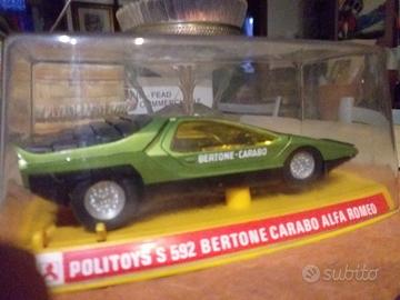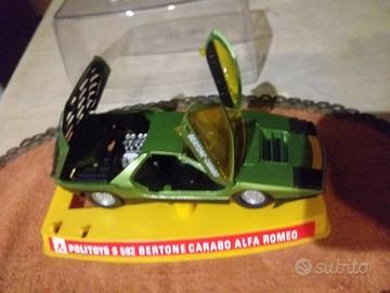 bellissimo modellino di auto sportiva vintage, alfa Romeo Bertone carabo , splendida colorazione verde metallizzato, con portiere apribili , compreso coperchio trasparente espositore.