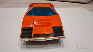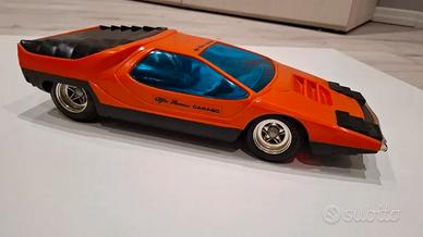 Vettura a radiocomando Alfa Romeo Carabo degli anni '70. Marca Re-el. Ottime condizioni vista l'età. Il radiocomando è ad impulso, tipico di quegli anni (sinistra, dritto, destra, e ritorno). Scatola non presente.