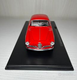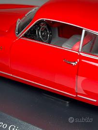 Alfa Romeo Giulietta Sprint 1954 in scala 1:24. Nuova ancora con sigilli. Porte, confano e baule apribili. Teca con qualche graffio.