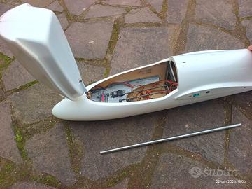 Vendo aliante versione pendio puro (no motore, no sgancio, no ruota) SHK di Jonathan, apertura alare 432 cm. Fusoliera in fibra, ala in poli rivestito da doppio strato di compensato. Completo di diruttori meccanici, 6 servi di cui 4 alari, centralina Jeti MAX BEC2 e due batterie full power 2S 2200.