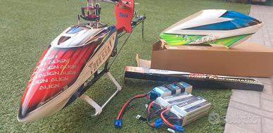 Align T rex 550 X con centralina Spirit. 3 lipo nuove . Pale nuove di ricambio. Canopy nuova di ricambio. Come si puo' notare in foto l'elicottero e' praticamente nuovo. Provato e mai fatto 3D