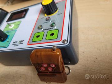 da zero a 14 V c.c e cambio di direzione attraverso due pulsanti con spie. Esclusivo radiocomando a 4 pulsanti che consente sia di variare la velocità