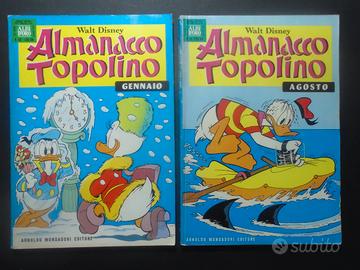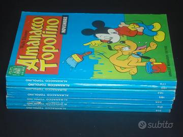 Piccolo lotto di Almanacco Topolino, anni 1971-1974. I seguenti numeri, in dettaglio: - 179, in più che ottime condizioni, pagine bianche, ben squadrato e compatto, giochi non svolti, con cartolina abbonamento, bollino ritagliato; 180, in buone/ottime condizioni, con cartolina abbonamento, giochi non svolti, bollino presente; 182, in ottime condizioni, ben squadrato e compatto, giochi non svolti, con cartolina abbonamento, bollino presente; 185, in ottime condizioni, ben squadrato e compatto, giochi non svolti, bollino presente, qualche macchiolina in copertina posteriore; 205, in più che ottime condizioni, ben squadrato e compatto, giochi non svolti, con cartolina abbonamento, bollino ritagliato; 212, in buone/ottime condizioni, ben squadrato e compatto, giochi non svolti, piccola abrasione in copertina posteriore, bollino presente; 214, in più che ottime condizioni, ben squadrato e compatto, alcuni giochi svolti, con cartolina abbonamento, bollino ritagliato; a disposizione per ulteriori foto
