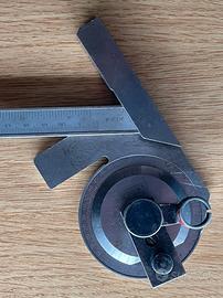 Goniometro universale di precisione marcato ALPA in acciaio inox, made in Italy, può essere utilizzato anche come calibro, funziona perfettamente anche se è un oggetto più che altro da collezionismo.
